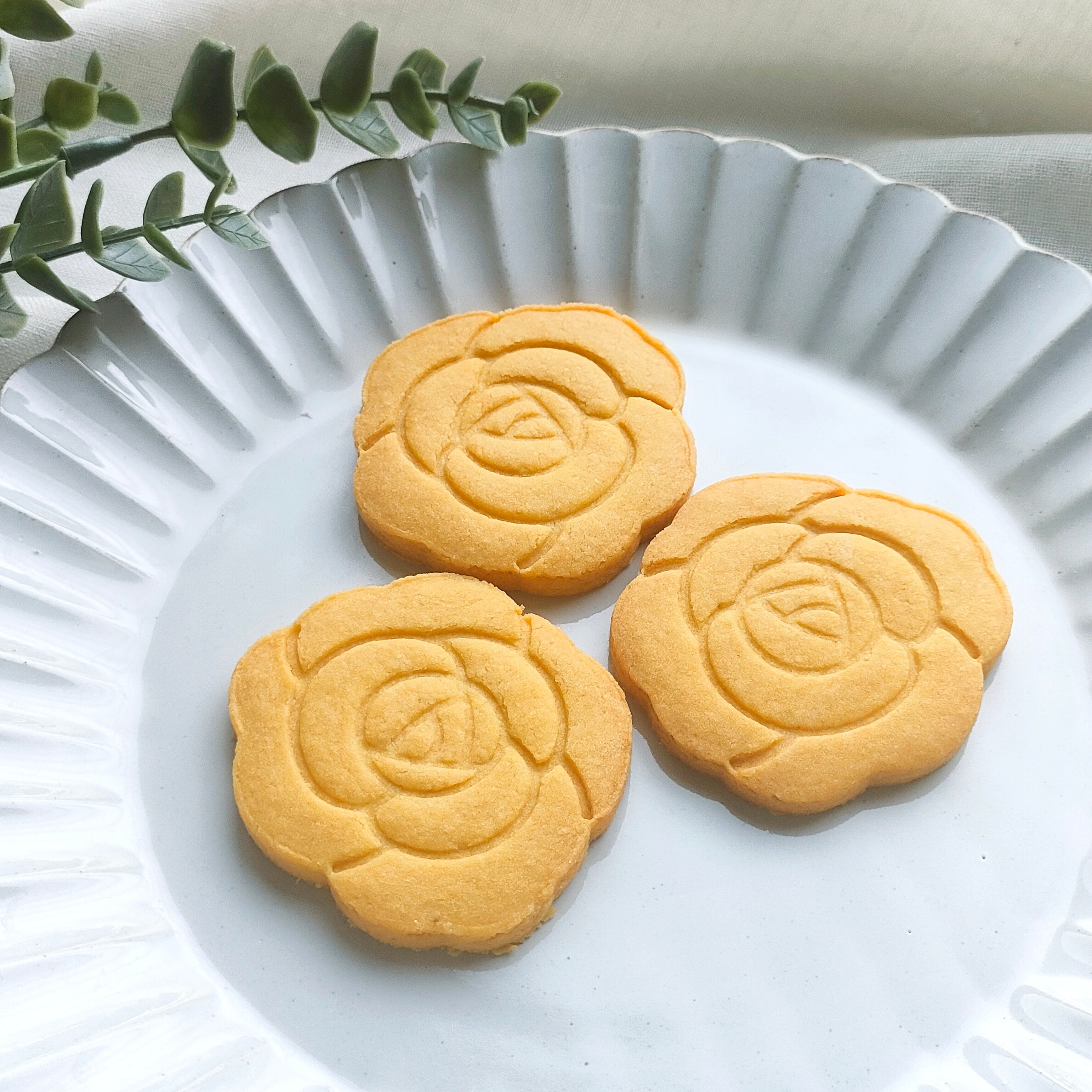 そっと伝えたい時に使っていただきたいと言う思いで焼いた、バラの形の米粉の焼菓子になります。